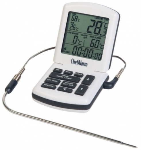 ChefAlarm professzionális digitális sütőhőmérő és időmérő, vezetékes, 90°-ban meghajlított, rozsadamentes beszúró érzékelővel, FEHÉR színű, rendelési kódja: 810-041 ,