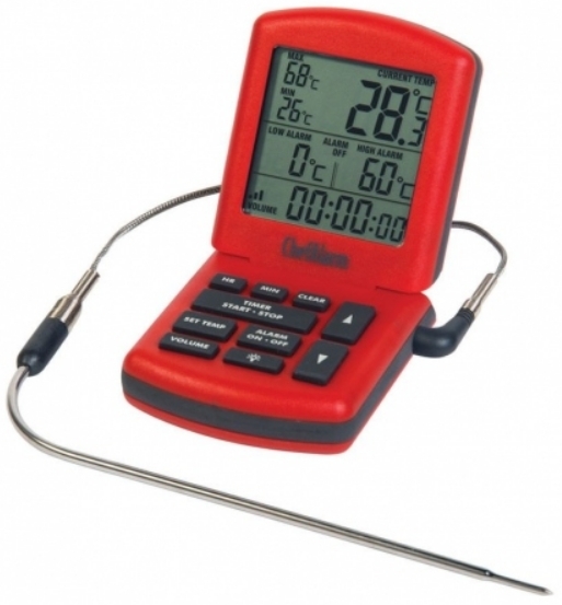 ChefAlarm professzionális digitális sütőhőmérő és időmérő, vezetékes, 90°-ban meghajlított, rozsadamentes beszúró érzékelővel, PIROS színű, rendelési kódja: 810-044 .