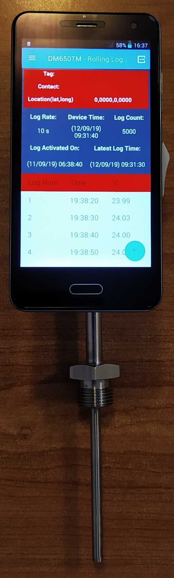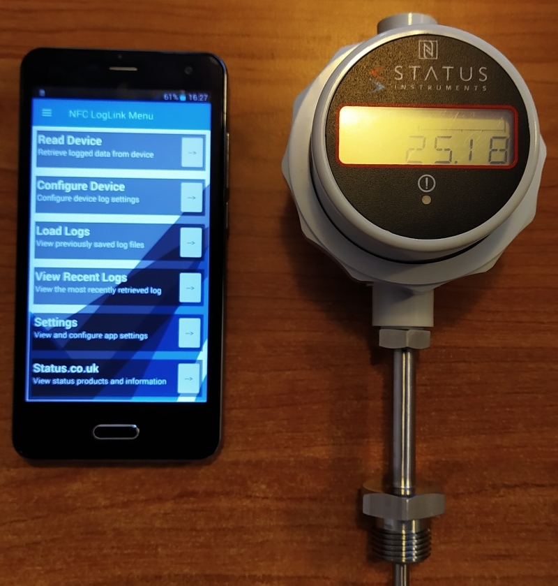 A DM 650TM hőmérséklet-kijelző és adatgyűjtő (NFC, USB) egy műanyag készülékházban elhelyezett hőmérsékletmérő/adatgyűjtő elektronika.