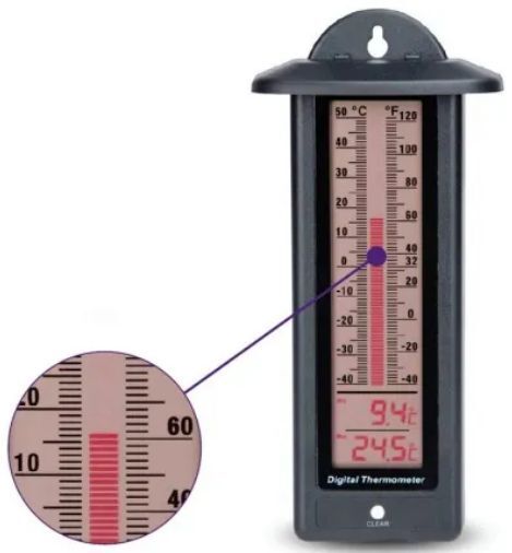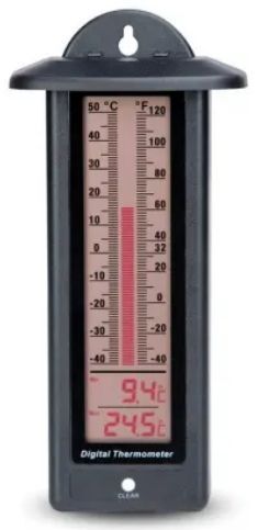A digitális Max/Min hőmérő egyszerre mutatja az aktuális hőmérsékletet (nagy méretű digitális LCD hőmérsékleti oszlop jeleníti meg) valamint a mért legmagasabb és legalacsonyabb hőmérsékletet.