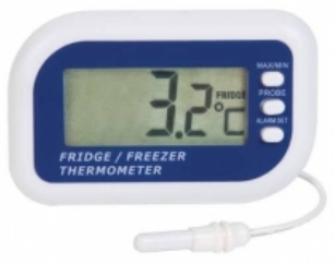 A hőmérő egyidejűleg két (pl. terem- és hűtő-) hőmérsékletet mér a beépített- és kivezetett érzékelőjével. Mindkét értékre külön számol Max és Min értéket, a 6 érték közül egyidejűleg egyet jelenít meg (a többit nyomógombokkal lehet előhívni). A Max/Min értékek a MAX/MIN gomb tartós (3 másodperc) megnyomásával törölhetők. A készülék riasztási funkcióval rendelkezik, így hangjelzést ad, ha a terem vagy a hűtő hőmérséklete a beállított értékeket túllépte. Műanyag fali tartó mellékelve.