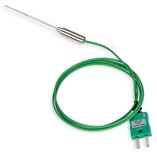 Mini tű érzékelő, érzékelő átmérője: 1,4 mm-ről elvékonyodik 1,0 mm-re, hossza: 50 mm, K-típusú, SMP-s csatlakozóval, 1 m PTFE kábellel.