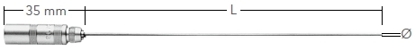 | Méretek | átmérő: 1 mm; hossza: 185 mm illetve 300 mm; válaszidő: 1 sec (t99 0,2 m/s áramló vízben) |