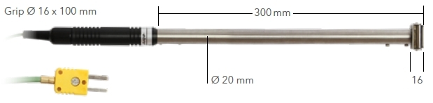 A TPN 1201, egy K típusú (NiCr-Ni) egyenes szárú, nyeles felületi érzékelő 1 m-es szilikon kábellel. Az érzékelő kizárólag SMP csatlakozóval rendelhető. A tapintó érzékelő sima felületek (műanyag, gumi, fém, csövek, öntőformák) hőmérsékletének mérésére alkalmas 1.200°C-ig.