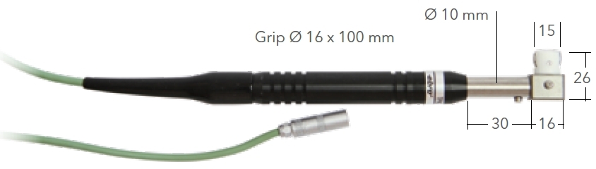 | Érzékelő | átmérő: 15 mm, teflonnal bevont; átmérő: 15 mm (10 mm szár); hossza: 300+16 mm; markolat: átmérője: 16 mm, hossza: 100 mm; válaszidő: 1,5 sec (t99) |