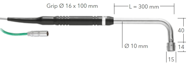 | Érzékelő | átmérő: 15 mm (10 mm szár); hossza: 300 mm; markolat: átmérője: 16 mm, hossza: 100 mm; válaszidő: 1,5 sec (t99) |