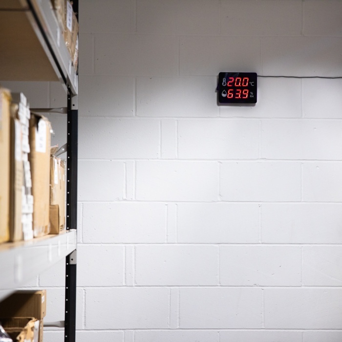 Hőmérséklet- és páratartalom mérés jól látható digitális kijelzővel. Ideális irodák, raktárak, laboratóriumok hőmérsékletének ellenőrzéséhez.